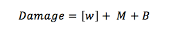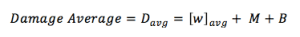 Similarly, the basic form of the damage calculation is not unlike that commonly used at the table. First, after an attack is successful, one determines the damage given by weapon die. Then the weapon’s ability modifier is added. Next, any applicable bonuses are added. Damage on a hit is given, with ability modifier represented by M and other bonuses represented by B, by the equation: