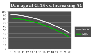 Second, by cursory inspection it is also clear that the upper limit of damage achieved with HOGAC is greater than HGBM. In fact, 112 damage is calculated as the difference, with 45.7% more damage potential demonstrated by HOGAC.